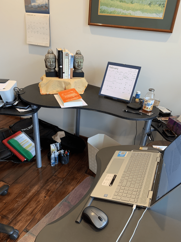 I spend more and more time at my desk these days, doing everything from completing three different daily journals to working on this blog. Because of this, my workspace needs a little upkeep from time to time. For example, right now there are a dozen books within arm’s reach that would normally be on bookshelves four to five feet away. I’m accessing them all but for some reason having them close by seems necessary right now. Am I expecting wisdom by osmosis? Inspiration by proximity?