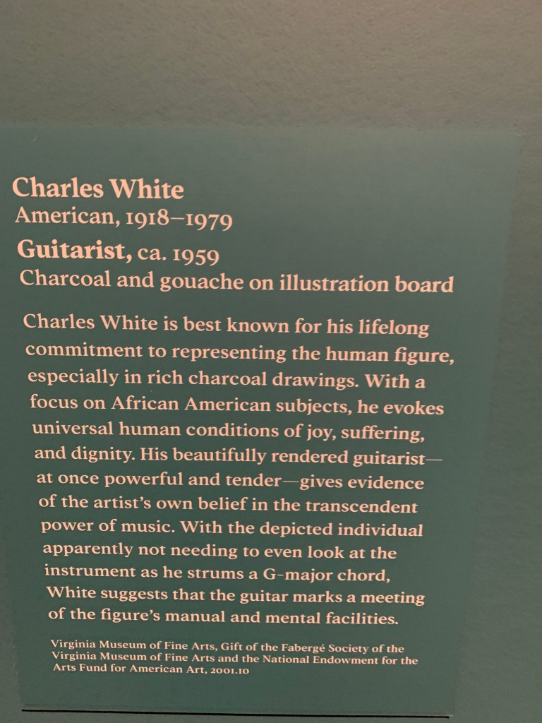 Attended the VMFA’s Original Exhibition Storied Strings: The Guitar in American Art. VFMA is the very impressive Virginia Museum of Fine Arts based in Richmond, VA. See https://vmfa.museum/pressroom/news/vmfas-original-exhibition-storied-strings-guitar-american-art-opens-october-8/